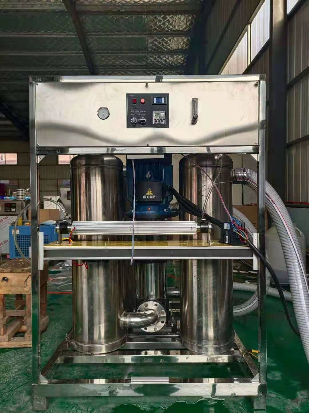 有水冷型和風冷型。臭氧消毒機工作時會產生大量的熱能,需要冷卻,否則臭氧會因高溫而邊產生邊分解。水冷型發生器冷卻效果好,工作穩定,臭氧無衰減,并能長時間連續工作,但結構復雜,成本稍高。風冷型冷卻效果不夠理想,臭氧衰減明顯。總體性能穩定的臭氧消毒機通常都是水冷式的。風冷一般只用于臭氧產量較小的中低檔臭氧消毒機。在選用發生器時,應盡量選用水冷型的。
