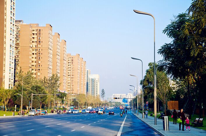 迎賓大道,是北京王府井新區(qū)的重要交通要道。2016年3月,耀星光電公司為王府井大道生產(chǎn)制作、安裝了147盞雙葉燈。雙葉燈,是以象征禮節(jié)的“茶葉”為設(shè)計元素,融入現(xiàn)代簡潔的線條,時尚有韻味,外觀美麗大方,環(huán)保節(jié)能。燈頭采用茶葉瓣的形式,實現(xiàn)了燈桿與燈頭的實體連接,在原有景觀照明基礎(chǔ)上,增加了功能照明,使功能照明和景觀照明完美結(jié)合。該款燈在王府井大道的運用,寓意歡迎“自遠方來的朋友”。