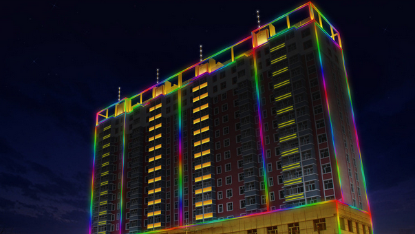 關于戶外亮化工程我們最常見的莫過于樓體led數碼管,任意滾動的光點在城市夜景亮化中起到了主要的美化作用。